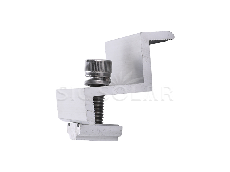 مشابك نهاية الألواح الشمسية المصنوعة من الألومنيوم لنظام تركيب الطاقة الشمسية امسك حافة اللوحة الشمسية بقوة لمنع الحركة أو الاهتزاز الناتج عن الرياح أو العوامل البيئية، مما يضمن تركيبًا مستقرًا وآمنًا.