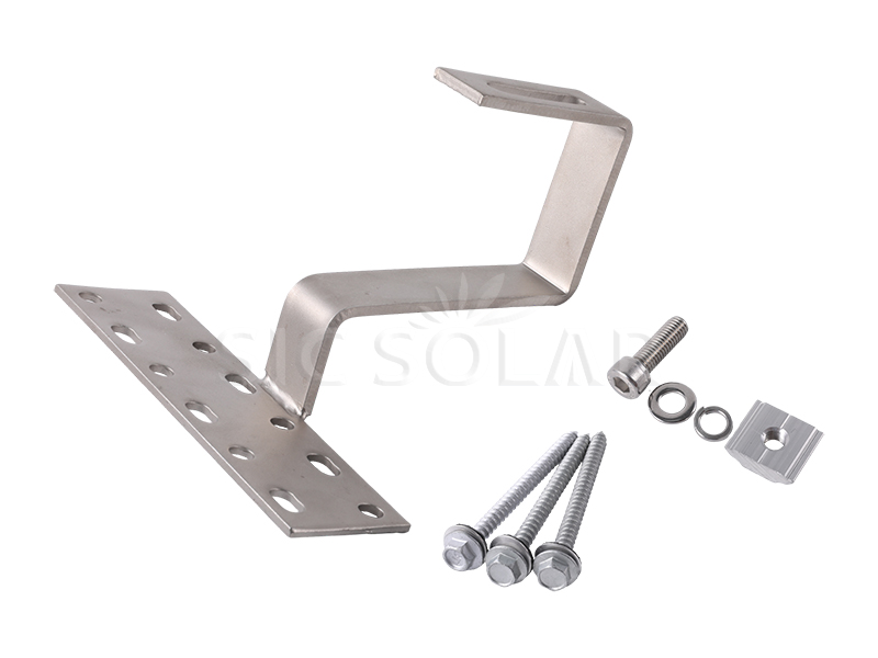 خطافات بلاط الأسقف المائلة جزء لا يتجزأ من نظام تركيب الألواح الشمسية للأسقف المائلة. مصممة لتثبيت قضبان تركيب الألواح الشمسية على هيكل السقف، مع ضمان عدم تلف البلاط أو المساس بعزله المائي.
