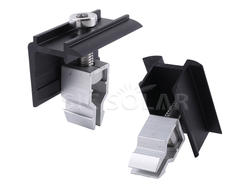مشبك سريع التركيب في المنتصف/الطرف لتركيب الألواح الشمسية يعد جزءًا مهمًا في تركيب الألواح الشمسية، وتتمثل وظيفته في تثبيت اللوحة الشمسية على السكة.