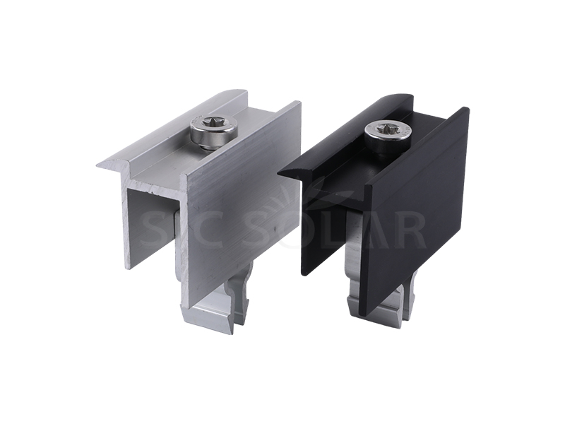 مشابك الطاقة الشمسية - مشابك متوسطة/نهائية سريعة التركيب بفضل برغي طويل وبرغي قصير، يمكن أن يناسب المشبك سمك الألواح الشمسية من ٢٩ مم إلى ٥٣ مم. يتوفر المشبك والبرغي المصنوعان من الألومنيوم باللونين الفضي والأسود.