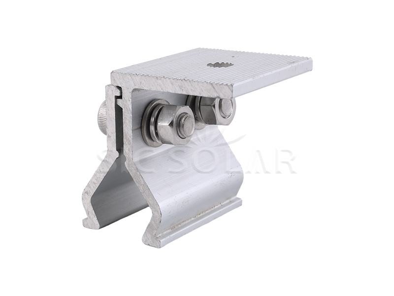 4️⃣ قم بتثبيت سكة التثبيت - قم بتأمين سكة أو قوس الطاقة الشمسية في الجزء العلوي من مشبك التماس باستخدام البراغي والغسالات.