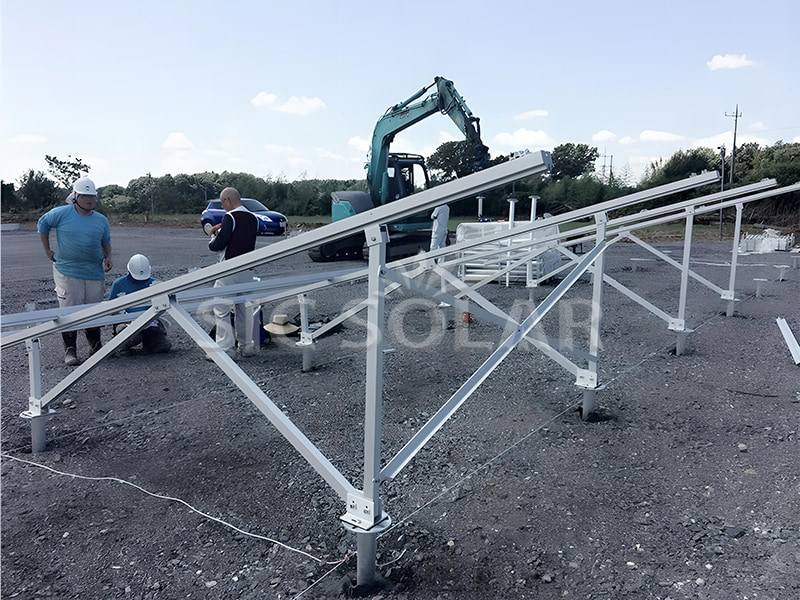 مرساة أرضية حلزونية شمسية ، بالمقارنة مع الأساس الخرساني، فإن المسمار الأرضي أسهل في التركيب، ويوفر الوقت ولا يسبب ضررًا لمنطقة تركيب الألواح الشمسية المحيطة.