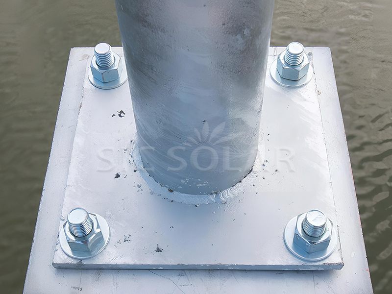 4️⃣ قم بتثبيت رف أو سكة الطاقة الشمسية - قم بربط هيكل تثبيت الطاقة الشمسية بالجزء الملولب المكشوف.