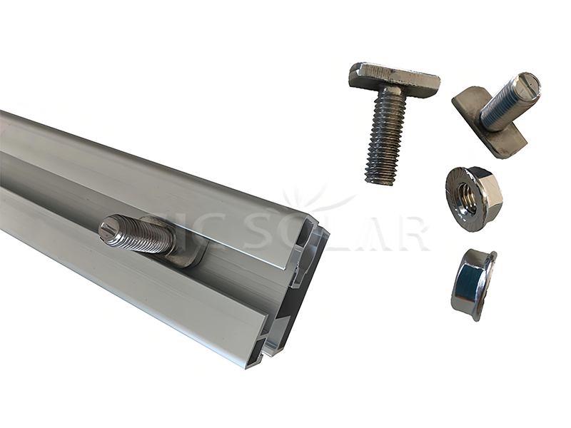 مسمار على شكل حرف T من الفولاذ المقاوم للصدأ لهيكل التركيب الشمسي يمكن استخدامه مع المشبك الداخلي والطرفي، والذي يمكنه توصيل سكة الطاقة الشمسية وتثبيتها على اللوحة الشمسية، وهو سهل التشغيل للغاية.